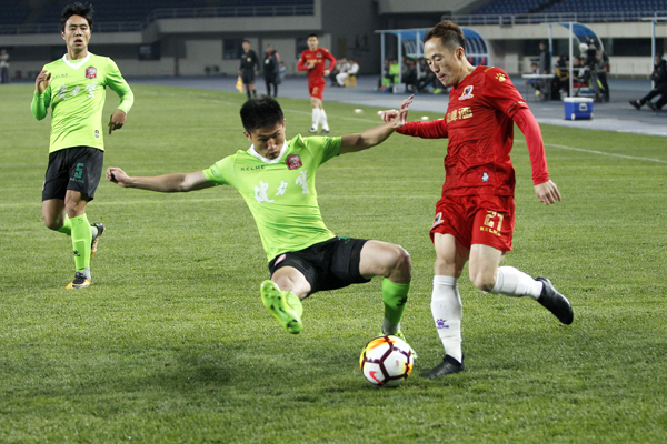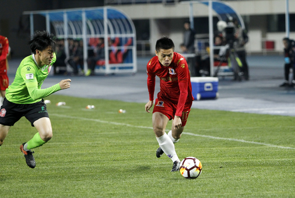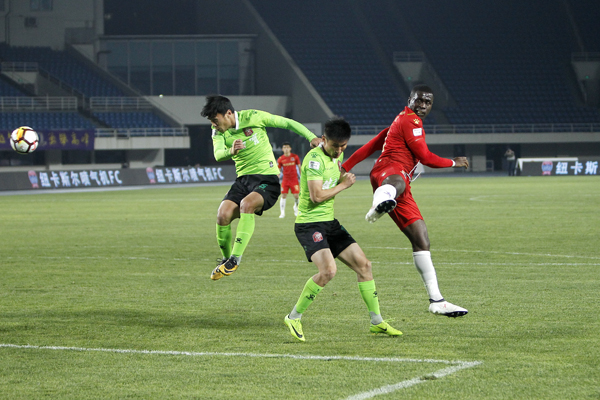 4月8日,2018中国足球甲级联赛第五轮北控燕京队和新疆天山雪豹队的比赛在奥体中心体育场继续进行。北控燕京队主场迎战新疆队,开场仅不到10分钟,北控队利用罚角球机会,杨运门前乱战破门,而1:0的比分也一直保持到了终场,主场的胜利使北控队排在了联赛次席。