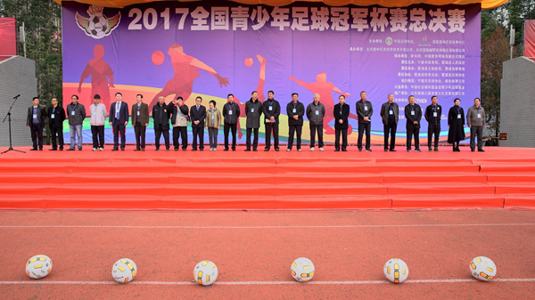 12月13日,由中国足球协会、国家奥林匹克体育中心主办,北京奥林匹克经济技术开发公司、北京国奥越野足球俱乐部有限公司共同承办的“2017年全国青少年足球冠军杯赛”总决赛在福建省宁德市霞浦一中擂响战鼓,拉开战幕。 开幕式由霞浦县人民政府副县长于洋主持,国家体育总局训练局原局长徐利,福建省政协教科文卫体委副主任、原福建省体育局局长徐正国,福建省体育局副局长陈忠和,国家奥林匹克体育中心经营处处长甘燕涛,国家奥林匹克体育中心能源处处长杨瑞堂,中国足协竞赛部副部长刘希付,中国足球著名学者金汕,宁德市体育局副局长章天军,中共霞浦县委常委、宣传部部长周平,福建省足协副主席、宁德市足协主任唐文彬等领导,中国足坛元老戚务生、韩重德、杨礼敏、余东风等嘉宾,以及冠军杯总决赛专家组、裁判组与近600名运动员、教练员共同出席了本次总决赛盛大的开幕仪式。 本次冠军杯总决赛共汇集了来自四川、北京、江苏、上海、成都、天津、浙江、大连、西安、河南、深圳、武汉、广州、延边、安徽、湖南、广东、青岛、新疆、厦门、霞浦等21个省、市、自治区和直辖市的34支队伍约476名运动员,全国六个分赛区U11、U12两个组别的男子、女子队伍冲出预选赛,来到霞浦参加第六届冠军杯赛总决赛。未来5天里,34支队伍将进行91场激烈的巅峰对决。第一阶段分组单循环积分赛,通过抽签进行单循环积分赛;第二阶段根据小组赛积分先后进行交叉淘汰赛,直至决出冠军。 早八时,34支参赛队汇聚霞浦一中,在开幕仪式正式拉开序幕之前,由民族小学、霞浦县第四小学、霞浦一中分别带来了的畲族凤凰鼓百人大阵、足球操表演以及啦啦操表演,完美的展现了霞浦少年昂扬向上的蓬勃激情,与足球勇往直前、自我超越的精神相呼相应。精彩的表演引得参赛队员纷纷叫好,现场声势浩大,场面极为壮观。 精彩的暖场表演节目之后,“2017年全国青少年足球冠军杯赛”总决赛开幕仪式正式开启。中共霞浦县委常委、宣传部部长周平致欢迎词,向各位领导嘉宾以及参加赛事的运动员、教练员、裁判员表示了热烈欢迎,他表示这是一次互相学习与交流的机会,希望这次“2017年全国青少年足球冠军杯赛”总决赛能够赛出水平,赛出激情,也赛出霞浦人对足球运动的满满热情。 中国足协竞赛部副部长刘希付也在发言中向竞赛委员会、竞赛组织工作人员、承办方、各代表队领队教练以及参赛队员提出五点希望与要求,希望所有队伍、球员都带着收获、带着经验、带着思考完成本次比赛,使之作为今后进一步提升的宝贵财富。 原中国足球协会主席、现中国足球发展与改革领导小组顾问年维泗老先生专门为比赛发来贺信。他在贺信中提到:祝愿2017年全国青少年足球冠军杯赛圆满成功!祝参赛各工作人员、裁判员、教练员、运动员健康快乐! 为保障赛事圆满顺利进行,宁德市体育局、霞浦县人民政府作为赛区主办单位,宁德市足球协会、闽东体育公司作为赛事执行单位为本次活动的顺利进行做出了极大努力。据福建省足协副主席、宁德市足协主任唐文彬介绍,工作人员从赛事前期的筹备、策划到赛事执行等方面做了大量工作,给参赛小队员们在食、宿、行和竞赛等方面提供全面周到的服务。与此同时,阿迪达斯、“小牛在线”、阿尔山矿泉、福驰体育、常佰通饮品、茵浪体育等赞助商也为比赛赠助力添动力,提供了极大的帮助与支持。 2017年,中国足协《2020行动计划》出台,它对推动青少年足球与球员水平的提高都提出了明确要求,促力形成青少年足球人才成长的多渠道、多平台。而全国青少年足球冠军杯赛就是现下最为有利的专业平台,它是目前我国U11、U12年龄组最权威、最专业、最有影响力的全国青少年足球赛事,为青少年精英足球人才的培养和输送提供了有力支持。